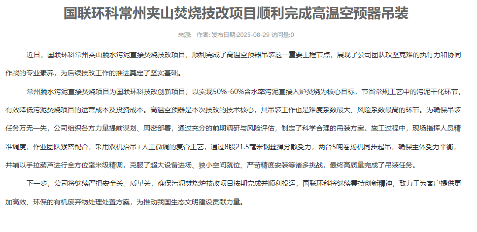 公司成立以來(lái),積極探索符合國家政策、適合國情的高效實(shí)用污泥處置工藝路線(xiàn),從技術(shù)選型、項目投資、建設和運營(yíng)等方面,因地制宜為客戶(hù)提 供全方位的污泥處理處置一體化解決方案。目前公司在調質(zhì)深度脫水、資源化焚燒、資源化利用等方面擁有多項核心技術(shù),已形成“污泥調質(zhì)深度 脫水+干化+自持焚燒”、“污泥干化+耦合焚燒發(fā)電”和“污泥堿熱水解蛋白提取+資源化利用”三大成熟的技術(shù)路線(xiàn),其污泥處理處置的減量化、無(wú)害化、資源化利用效果處于國內污泥處理處置技術(shù)的領(lǐng)先水平。公司在江蘇、上海、山西、廣西、四川等省市,已建成了多個(gè)污泥處理處置項目,運營(yíng)穩定,得到了生態(tài)環(huán)境部、住建部等相關(guān)部門(mén)的充分肯定,并以減量效果徹底 ...